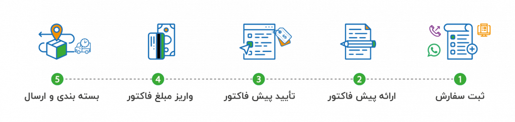 شما میتوانید سفارشات خود را چه متنی و چه تصویری از طریق واتساپ یا تلگرام ارسال کنید تا کارشناسان ما در اسرع وقت نسبت به صدور پیش فاکتور اقدام کنند